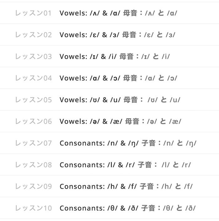 レッスン数は全備で20となっており、終わる頃にはかなりネイティブに近いクリアな英語を発音できるようになっています。